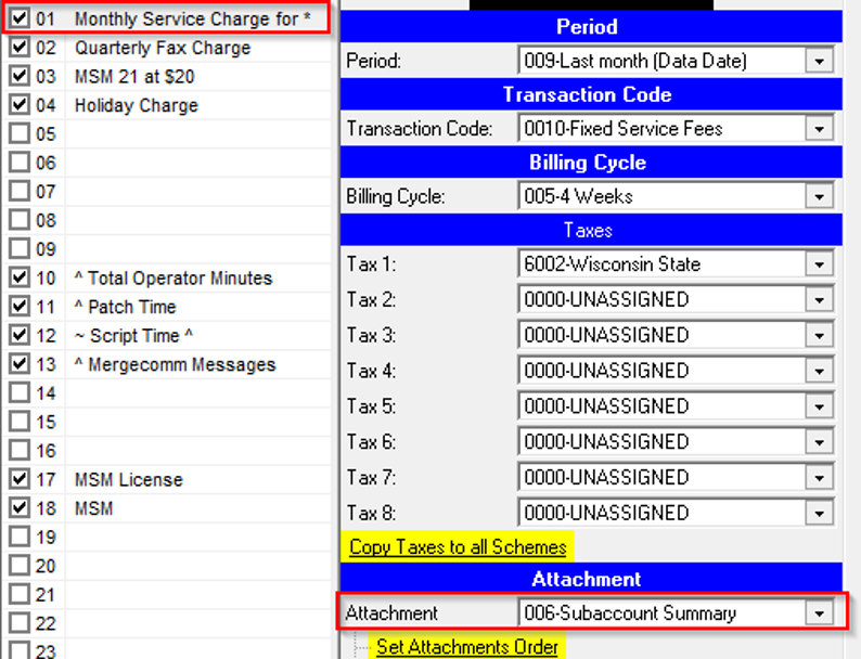 2. Select 006- Subaccount Summary from the Attachement drop-down. Subaccounts have to have the ^ in the Scheme descriptions or the Subaccount Summary on the Master Account will have zeros.