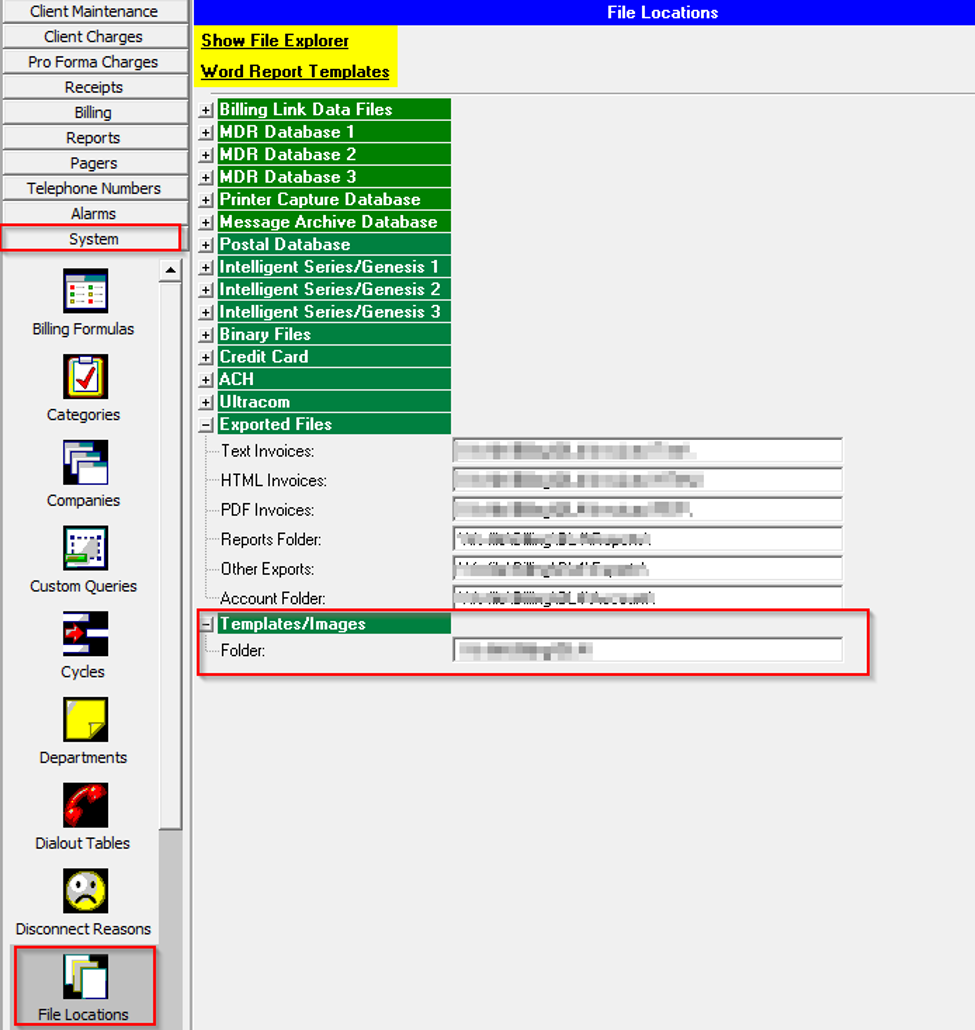 3. Check the Email Log file located in the Template folder. Look at System-File Locations-Word Report Templates (yellow link) to see where the templates are saved. If that is blank, it defaults to the Template location (usually c:Amtelcobillingbl4wordreporttemplates).