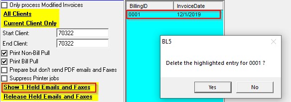 1. To clear one email, click on Show Held Emails, highlight the BillingID and Shift+Right click: