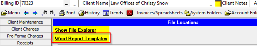 1. Look at System-File Locations-Word Report Templates (yellow link) to see where the Templates are saved. If that is blank, it defaults to the Template location (usually c:Amtelcobillingbl4wordreporttemplates).